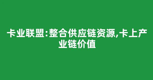 卡业联盟:整合供应链资源,提升产业链价值卡业联盟