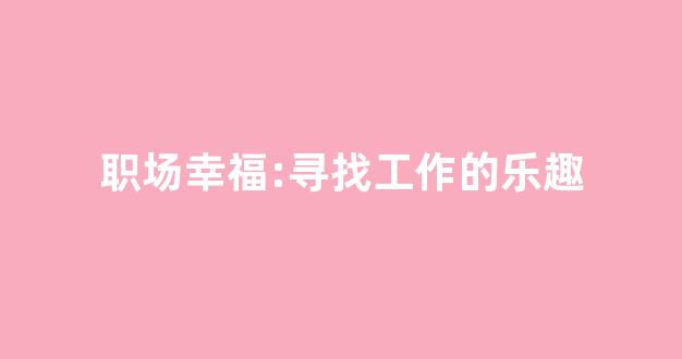 卡业联盟:职场幸福:寻找工作的乐趣(职场幸福的心得体会)