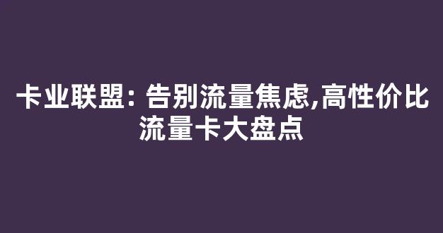 卡业联盟: 告别流量焦虑,高性价比流量卡大盘点