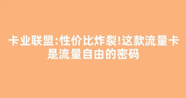 卡业联盟:性价比炸裂!这款流量卡是流量自由的密码