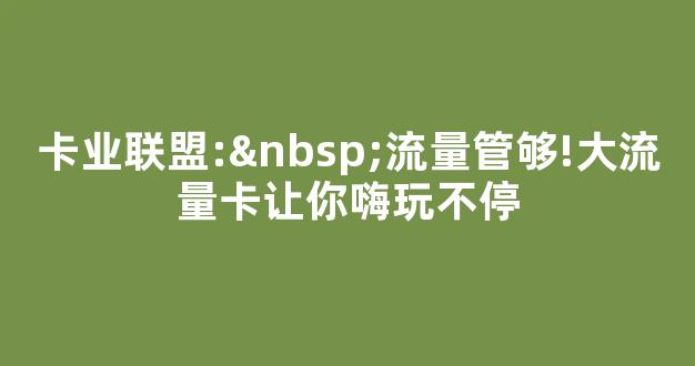 卡业联盟:流量管够!大流量卡让你嗨玩不停