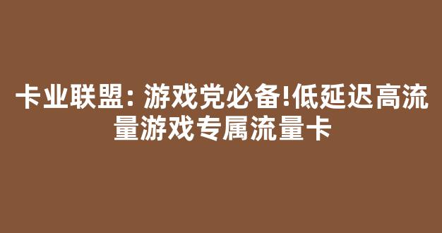 卡业联盟: 游戏党必备!低延迟高流量游戏专属流量卡