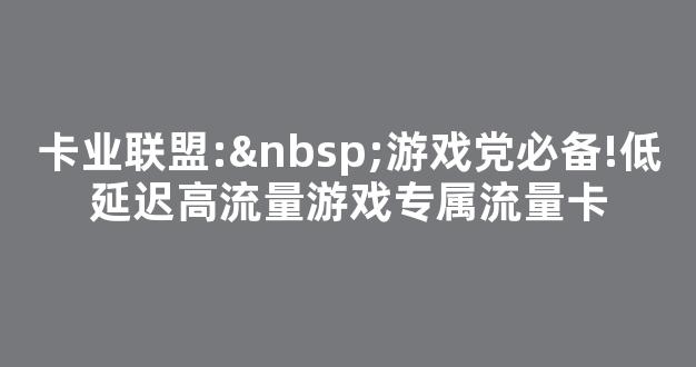 卡业联盟:游戏党必备!低延迟高流量游戏专属流量卡