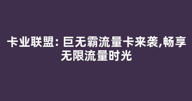 卡业联盟: 巨无霸流量卡来袭,畅享无限流量时光