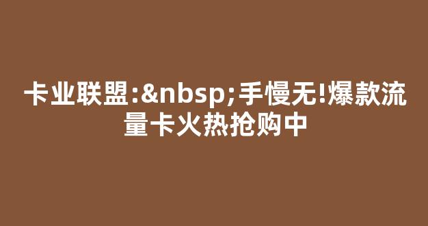 卡业联盟:手慢无!爆款流量卡火热抢购中卡业联盟