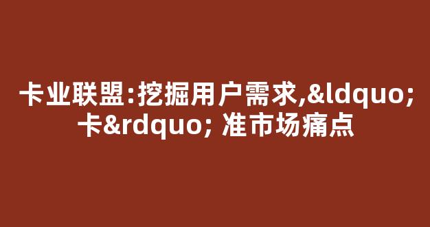 卡业联盟:挖掘用户需求,“卡” 准市场痛点