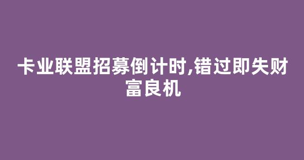 每一次机会的错失都可能意味着财富的流失。卡业联盟的招募倒计时已经进入最后阶段,过了这个时机,可能就再也没有这么好的机会了。通过卡业联盟,你不仅能够得到丰厚的回报,还能和其他行业领袖一起共享资源,拓展你的商业版图。因此,抓住这一最后的招募机会显得尤为重要。