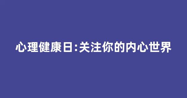 心理健康日:关注你的内心世界